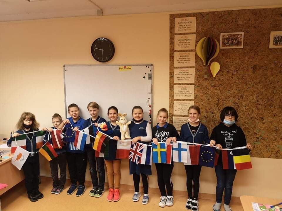 Šįkart visą savaitę 2-8 klasių mokiniai Europos kalbomis dalyvavo viktorinoje, mokėsi pasisveikinti, atsisveikinti, padėkoti, skaičiuoti, piešė ir kūrė projektus „Keliaujame po Europos šalis“. Smagu, kad nemažai mokinių keliauja ne tik Lietuvoje, bet ir užsienyje. Turkija, Latvija, Lenkija, Vokietija, Austrija, Italija, Prancūzija, Slovakija, Didžioji Britanija, Graikija, Belgija, Kroatija, Bulgarija, Sardinijos sala – tai tik dalis šalių, kurios jau yra aplankytos. O kiek dar jų bus aplankytų ateityje!Užsienio kalbų mokėjimas atveria kelius į kitas šalis, padeda lengviau pajusti kitų šalių tradicijas, kultūras. Reikia nepamiršti, kad kalba – ne tik žodžiai, ji leidžia pamatyti pasaulį kitomis akimis. Taigi, mokykimės užsienio kalbų ir būsime turtingesni! Užsienio (anglų, vokiečių, prancūzų ir rusų) kalbų mokytojos.