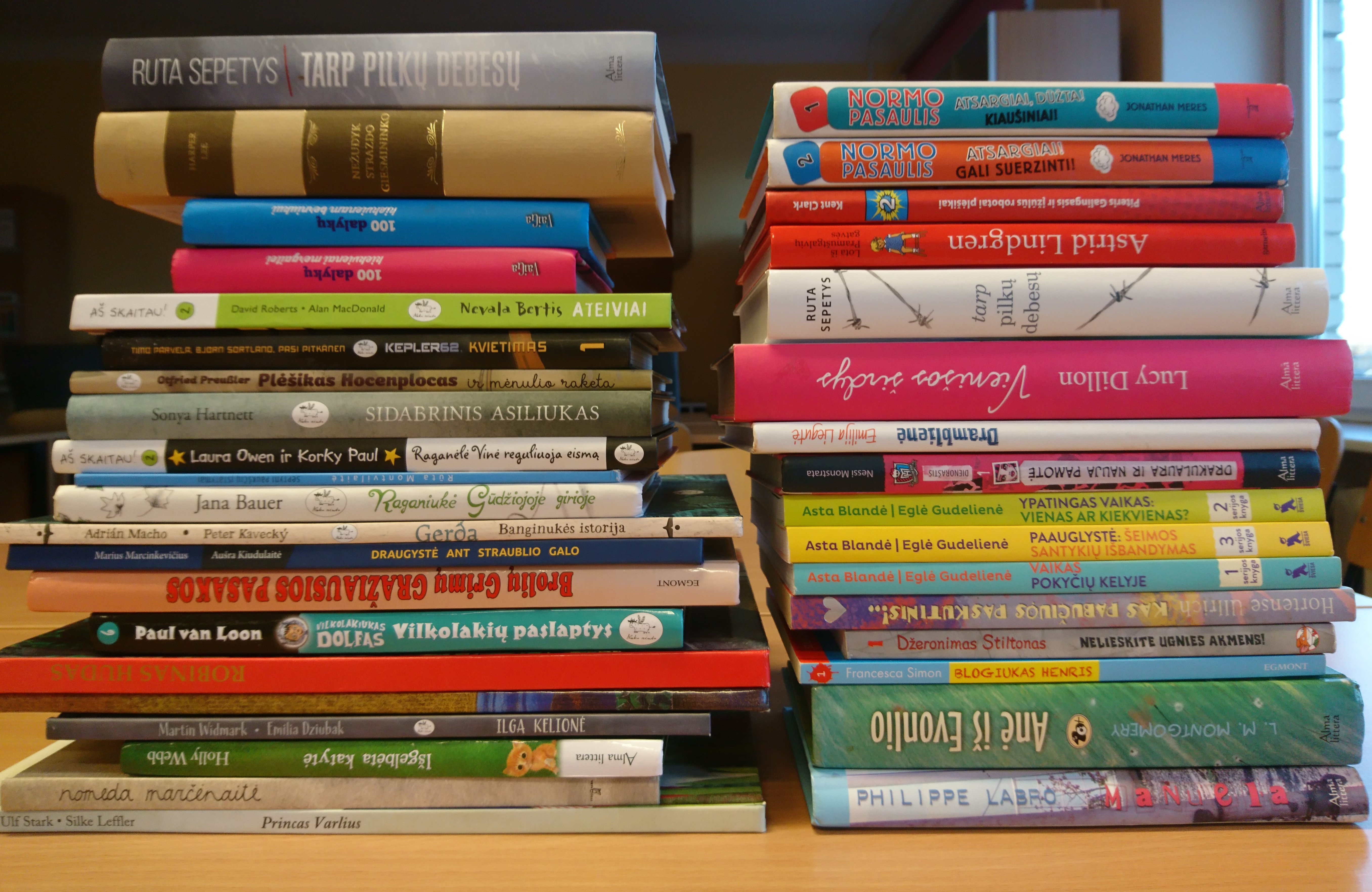 Tai pat dėkojame 7a, 7b, 7d klasėms (kuratorė V. Vaitekutienė) už padovanotas knygas iš programinės literatūros kūrinių sąrašo: R. Šepetys „Tarp pilkų debesų“, H. Li „Nežudyk srazdo giesmininko“, G. Viliūnė „Karūna be karaliaus“.
