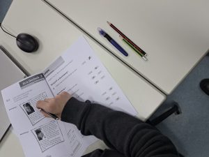 Dešimt 8 a,b,c,d klasių mokinių balandžio 7d. atliko vokiečių kalbos skaitymo, klausymo, rašymo ir kalbėjimo užduotis. Mokiniai ruošėsi gegužės mėnesį laikyti  vokiečių kalbos sertifikatą.