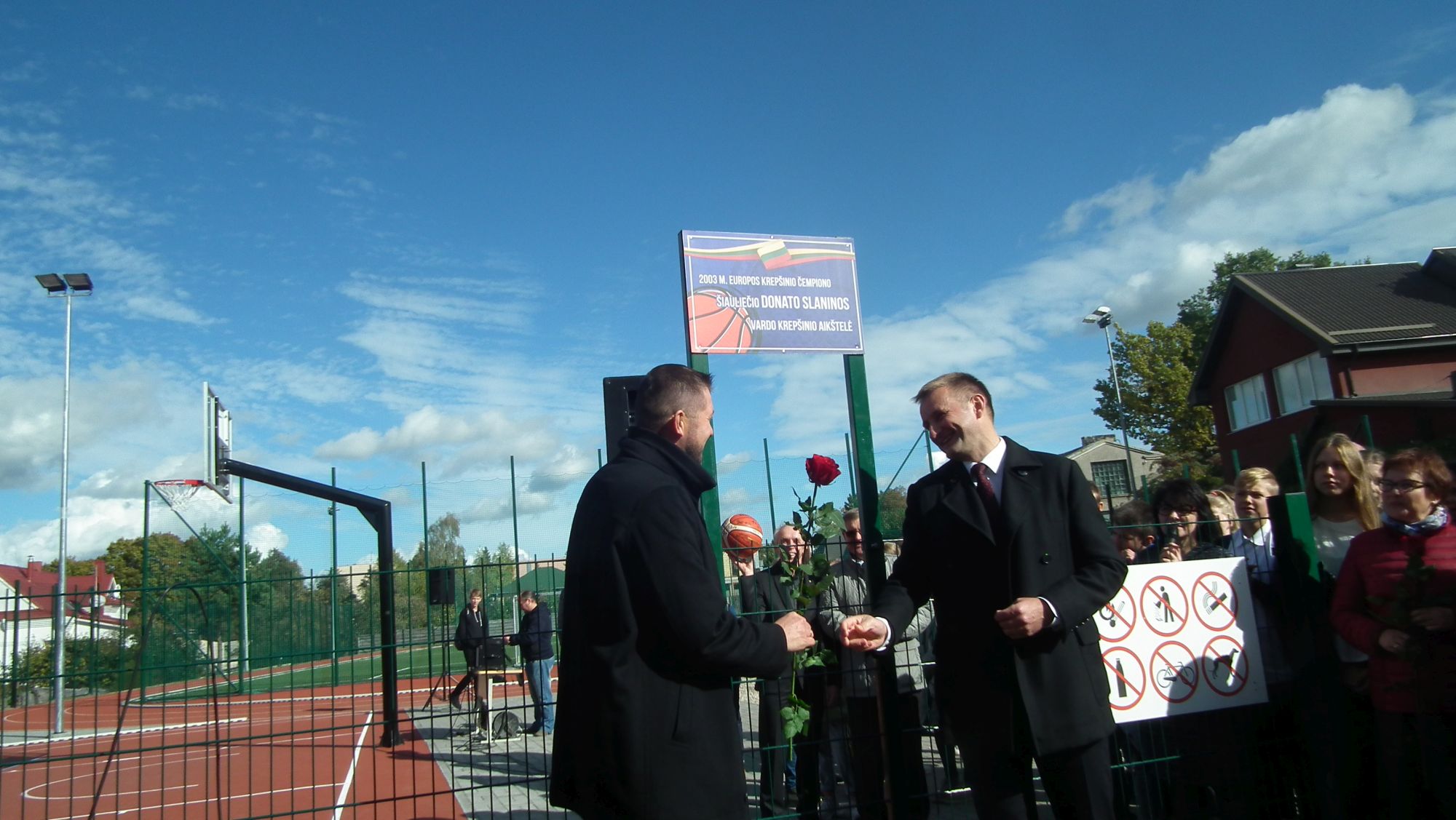 Renginio pabaigoje iškilmingai atidaryta 2003 m. Europos krepšinio čempiono šiauliečio Donato Slaninos vardu pavadinta Šiaulių Jovaro progimnazijos krepšinio aikštelė.