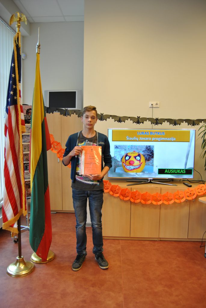 2017-11-15 Šiaulių P.Višinskio viešojoje bibliotekoje Amerikos skaitykloje vyko mokinių konkurso „Gražiausias Helovino moliūgas” apdovanojimai. Plačiau: http://savb.lt/lt/renginys/graziausias-helovino-moliugas-2017/.