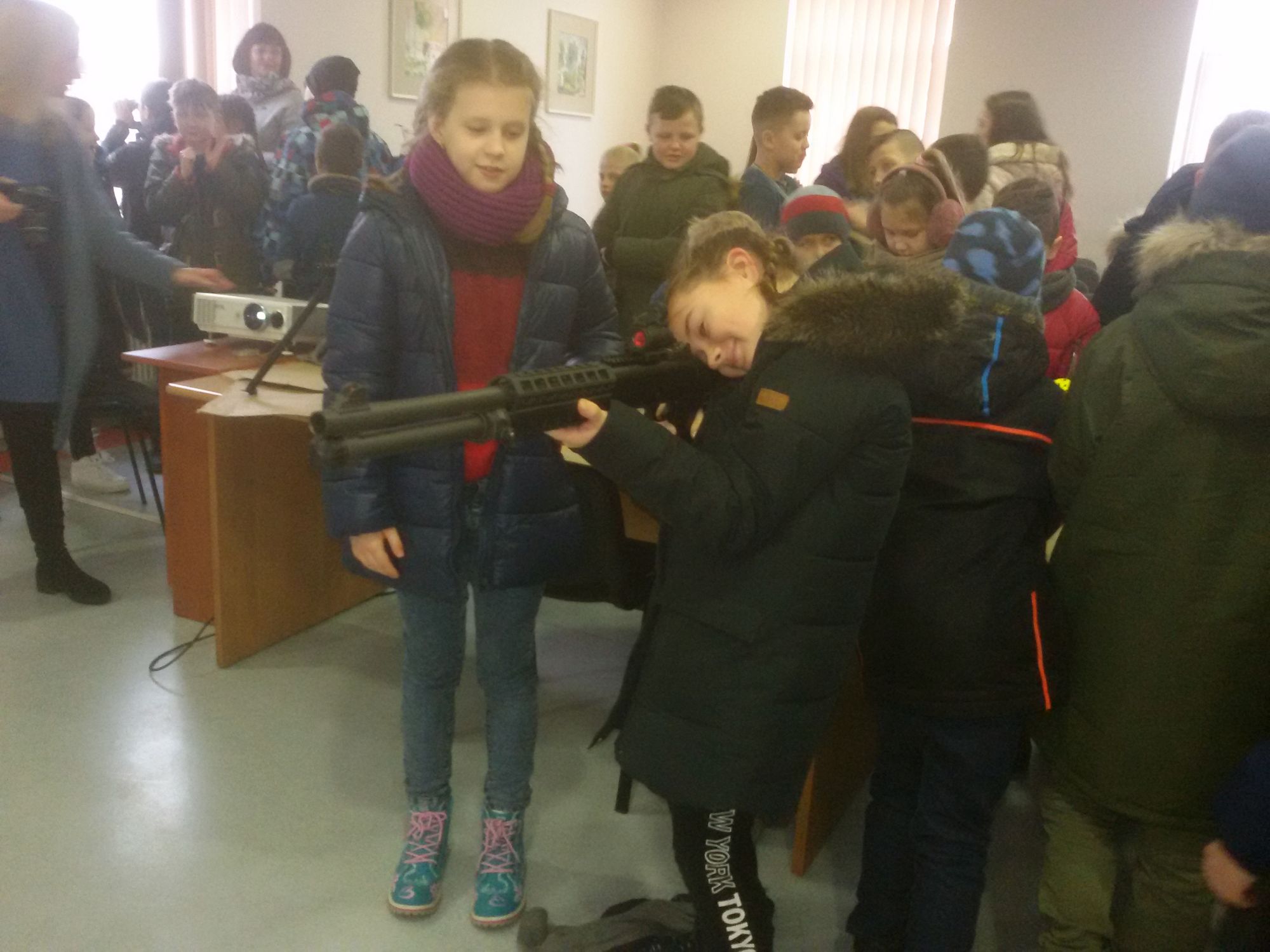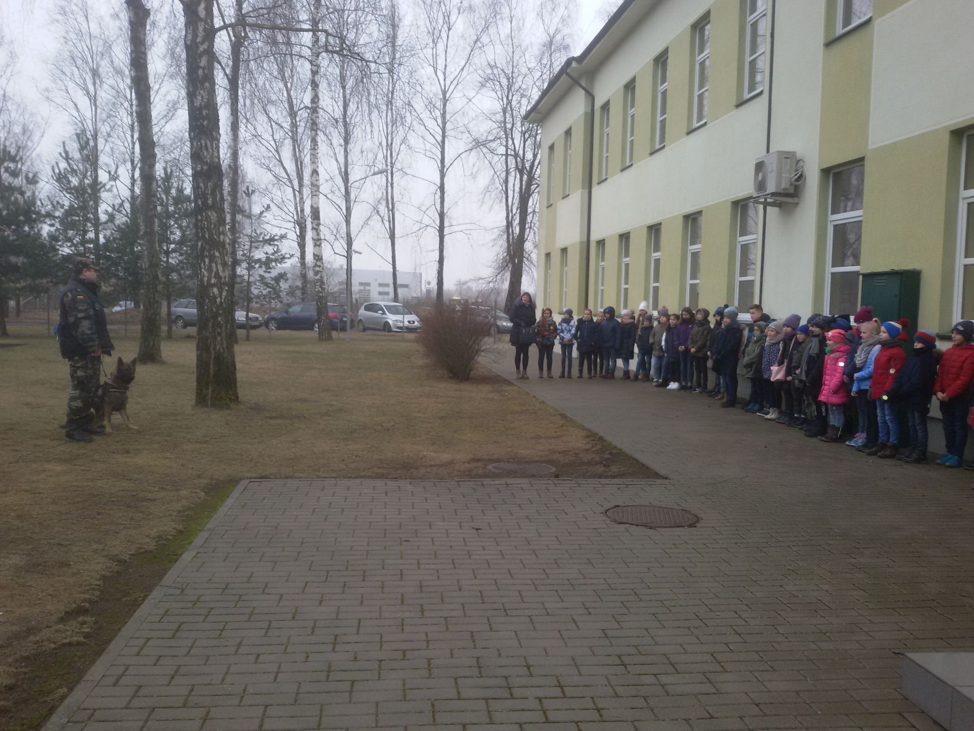 Kovo 4 dieną 2a ir 4b klasės mokiniai lankėsi Valstybės sienos apsaugos tarnybos Pakrančių apsaugos rinktinės Zoknių užkardoje. Vaikai susidomėję stebėjo kinologo paruoštą tarnybinių šunų pasirodymą; sužinojo, nuo ko reikia pradėti mokyti jauną šunį, kad jis taptų sumaniu pasieniečio pagalbininku. Žiūrėdami filmą apie tarnybą, pamatė sunkų ir pavojingą pasieniečio darbą. Stebėjo pareigūnų demonstruojamą amuniciją, specialiąsias priemones ir įrangą. Visi galėjo išbandyti pasienio pareigūno liemenę, įrankius ir priemones. Pamoka apie pasieniečių darbą buvo labai įdomi ir pamokanti.