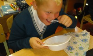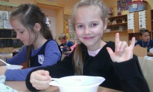 Spalio 10-oji – pasaulinė Košės diena. Mokykloje jau tapo tradicija tą dieną pradėti sveikais pusryčiais – avižine koše. Kiekvienas pradinukas gavo po dubenėlį karštos avižinės košės pagardintos braškėmis ir bananais. Pakvipo visa mokykla. Smagu pusryčiauti visiems kartu. Pradinukai košę kabino noriai. Mokytojos priminė kas sudaro sveiko maisto piramidę, kuo naudingos košės. Vaikai dalijosi patirtimi kokias košes mėgsta, kaip pusryčiauja namuose. Dovanų gavo knygelę apie Dribsės ir Dribsio nuotykius, kurią perskaitę ir tėveliams primins kaip sveikai maitintis. Tai dar viena pamokėlė, kad mūsų vaikai augtų sveiki ir energingi. Ačiū „Malsenai” už košę.