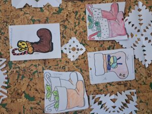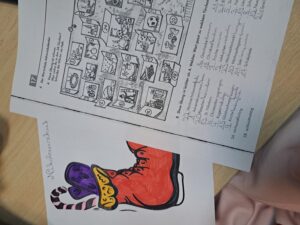 Žiūrėjo filmą apie S.Nikolaus, dainavo dainelę, vaišinosi iš kalėdinio batuko ištrauktu saldainiuku, atliko kalėdinio kalendoriaus užduotį ir spalvino S. Nikolaus batuką.