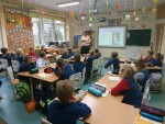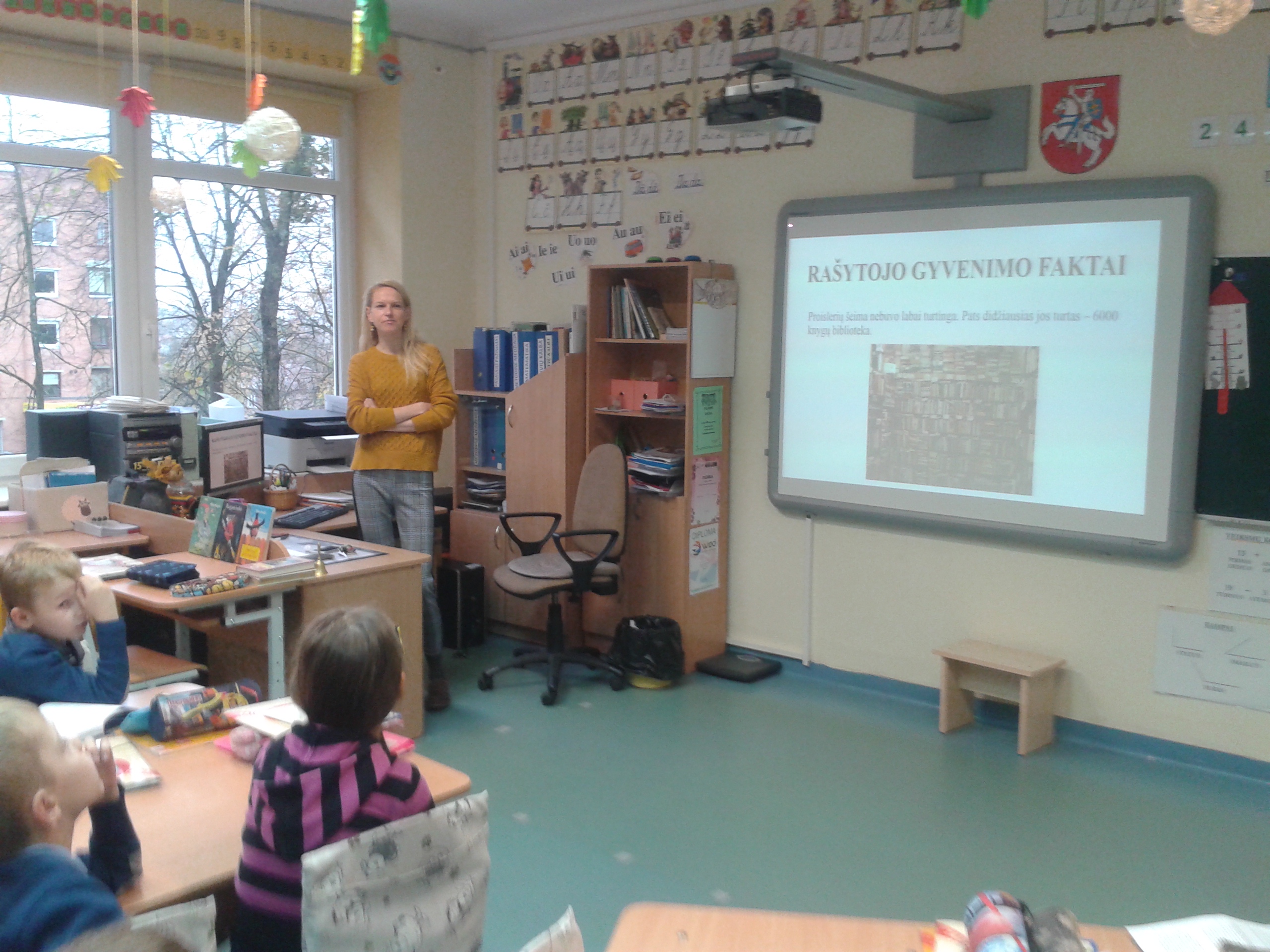 2018 m. spalio 22 d. minėjome garsaus vokiečių vaikų rašytojo Otfrydo Proislerio 95-ąjį jubiliejų. Pristatėme 2b, 2c, 2d kl. mokiniams skaidres apie O.Proislerio gyvenimą ir kūrybą. Papasakojome apie rašytojo vaikystę, kūrinių atsiradimą. Jis parašė 32 knygas, kurios išverstos į 55 pasaulio kalbas. „Raganiukė“, „Mažasis vandenis“, „Vaiduokliukas“, „Plėšikas Hocenplocas“ daugybės skaitytojų pamėgtos knygos. Visi jo knygų veikėjai – linksmi , geraširdžiai, išradingi, šiek tiek išdykę ir padaužos, dažnai gebantys pasinaudoti burtais, tačiau ne visagaliai, o tik jautrios ir pažeidžiamos būtybės, kurioms reikia pagalbos ir užuojautos. Vaikai klausėsi žaismingos ištraukos apie gerą, naktinį vaiduokliuką, skaitomos iš rašytojo knygos „Vaiduokliukas“, ir iliustravo.