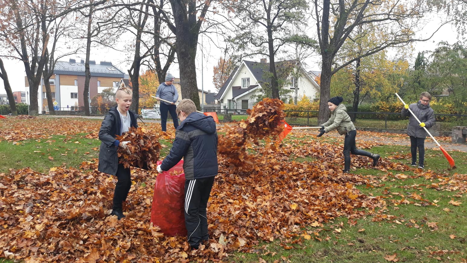 2019 m. spalio 21 d., pasibaigus pamokoms, būrys 6d kl. mokinių kartu su kuratore Monika Urbietiene skubėjo į Sukilėlių kalnelį, kur užsiėmė savanoriška veikla – grėbė lapus. Nepaisant oro sąlygų, moksleiviai buvo puikios nuotaikos ir aktyviai ėmėsi darbo. Atrodytų, jų nusiteikimą pamatė ir pati gamta – baigėsi lietus ir ėmė skaisčiai šviesti saulė. Šios veiklos metu ne tik prisidėta prie Šiaulių miesto gražinimo, bet ir buvo tobulinamas darbas komandoje. Ačiū kuratorei ir mokiniams, aktyviai prisidėjusiems prie savanoriškos veiklos!