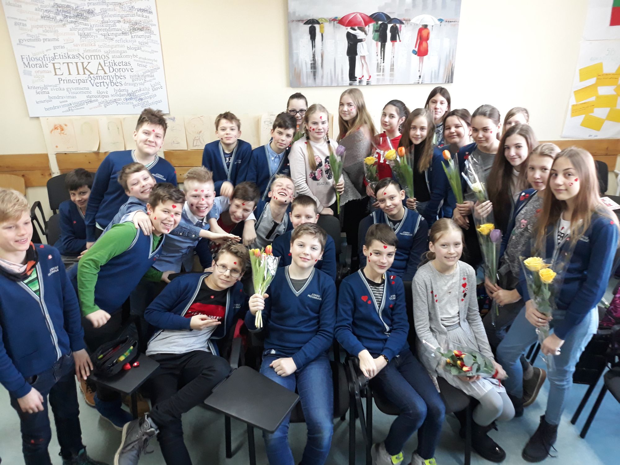 Niekas nepaneigtų, kad vasaris – meilės mėnuo. Per Šv. Valentino dieną kažkas tarsi įkvepia į mūsų širdis šiek tiek džiaugsmo (gal artėjančio pavasario nuojauta?). Nuo pat ankstyvo ryto, 5 b klasės berniukai savo iniciatyva bendraklases mergaites ir mokytojas apipylė širdelių, saldainių ir gėlių lietumi. Tikimės, kad Šv. Valentino diena atnešė į mokyklą daugiau meilės ir pagarbos. Linkime nuolat mylėti ir rodyti meilę vienas kitam.