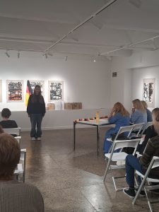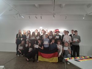 Balandžio 11 d. Šiaulių Dailės galerijoje vyko Šiaulių miesto 6-12 klasių mokinių vokiečių kalbos meninio skaitymo konkursas. Gera akustika, vokiška atributika papuošta salė ir mokiniai  vokiškai skaitantys eiles.