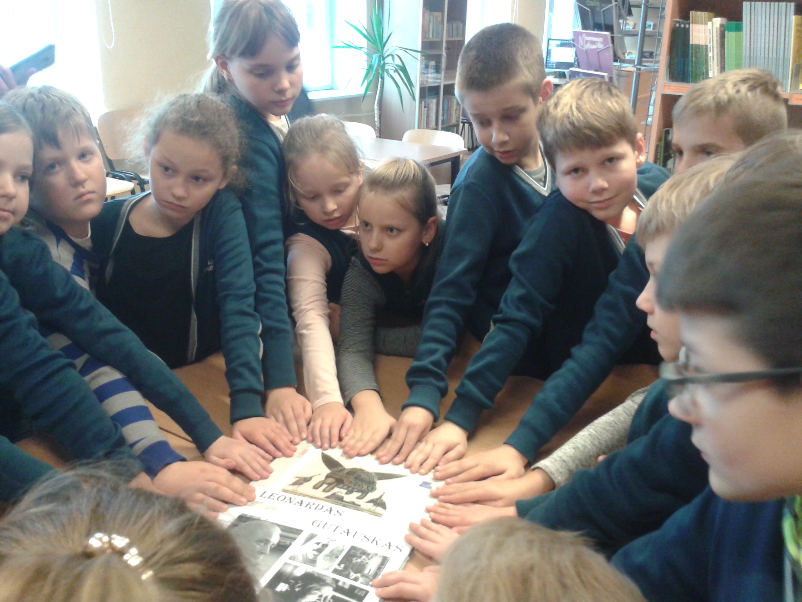 2018 m. lapkričio 6 d. mokyklos bibliotekoje vyko renginys, skirtas dailininkui ir rašytojui Leonardui Gutauskui, švenčiančiam 80-ies metų jubiliejų. 3b (mokytoja G. Švirikienė) ir 3c (mokytoja R. Toleikienė) klasių mokiniai piešė dailininko iliustracijas iš knygų vaikams autoriaus stiliumi. Jie pavaizdavo elnius, angelus, vėjus.Vaikai pristatė iliustracijas, skaitė kūrinius. 3 b kl. mokiniai parengė knygą apie dailininką ir poetą. Bibliotekininkė supažindino vaikus su L. Gutausko gyvenimo faktais ir kūryba. Skaitė eilėraščius, apibūdino eilėraščių ir iliustracijų simbolius. Trečiokai darbelius padovanojo bibliotekai. Maloniai kviečiame aplankyti parodą.