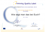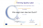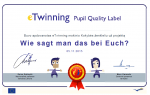 Mūsų eTwinning projektas “Wie sagt man das bei Euch?” nusipelnė papildomo sėkmės pripažinimo! Mums suteiktas eTwinning kokybės ženklelis.