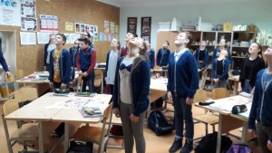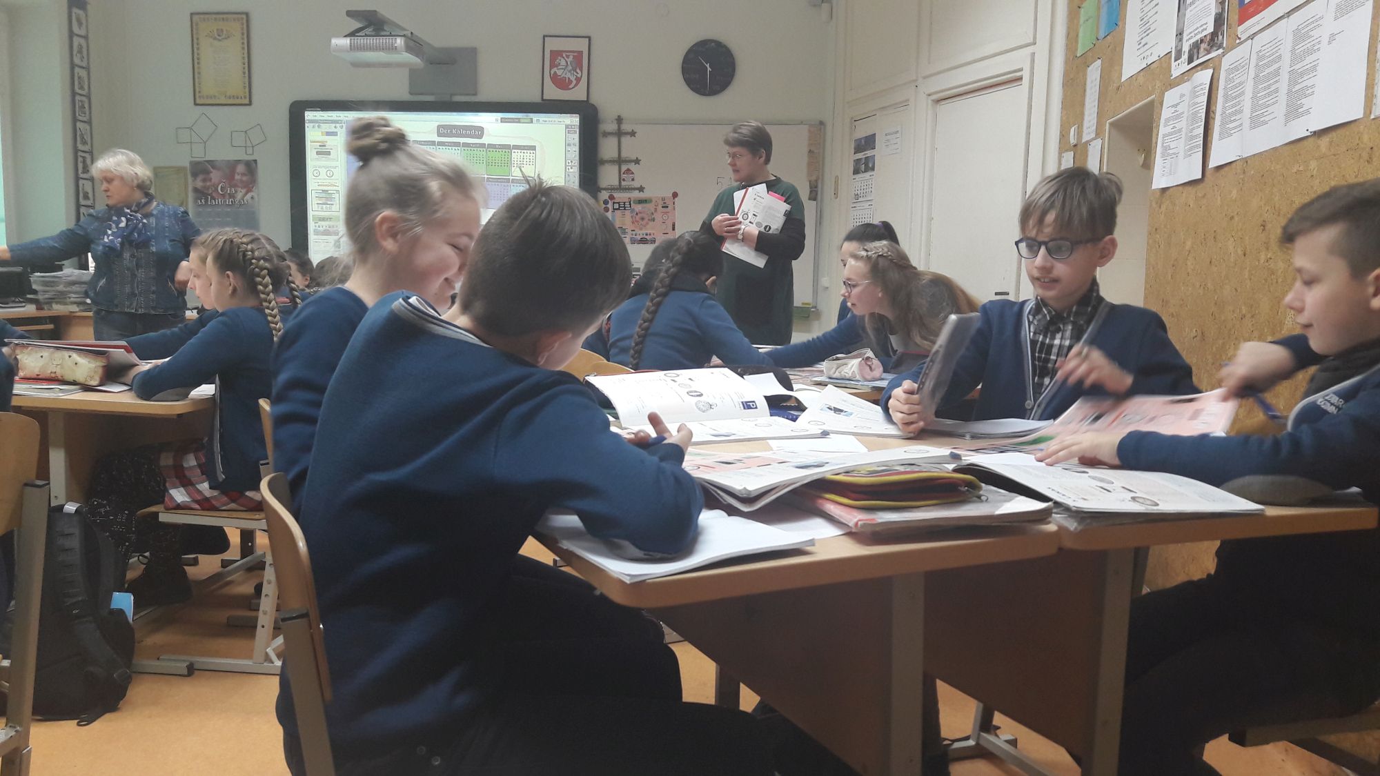 Kovo 28d. pravesta integruota matematikos ir vokiečių kalbos pamoka 5c klasėje. Ją stebėjo projekto „Integruotas vokiečių kalbos ir matematikos mokymas“ dalyvė iš Akmenės gimnazijos. Mokiniai sprendė uždavinius grupėse, tema „Laikas“. Skaitė valandas ir minutes vokiškai, valandas pavertė į minutes. Vokiškame plakate ieškojo įvairių laikrodžių vokiškų pavadinimų, pabandė juos skaityti. Uždavinyje su mėnesiais, surado vokiškus mėnesių pavadinimus, vokiškai skaitė dienų skaičių. Temos – ilgis, masė, laikas, pinigai itin dera su užsienio kalba. Pamoką užbaigėme – vokiška mankšta.