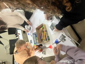 Kūrybinėse dirbtuvėse, remdamiesi M. K. Čiurlionio paveikslais, kūrėme savitus komiksus- kupinus fantazijos.