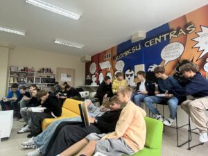 Praūžus vasaros šėlsmui, dažnam mokinukui dar vis sunku „kibti‘‘ į mokslus. Todėl su lietuvių k. ir literatūros mokytoja priėmėme sprendimą pamoką turėti KITAIP, KITOJE erdvėje!