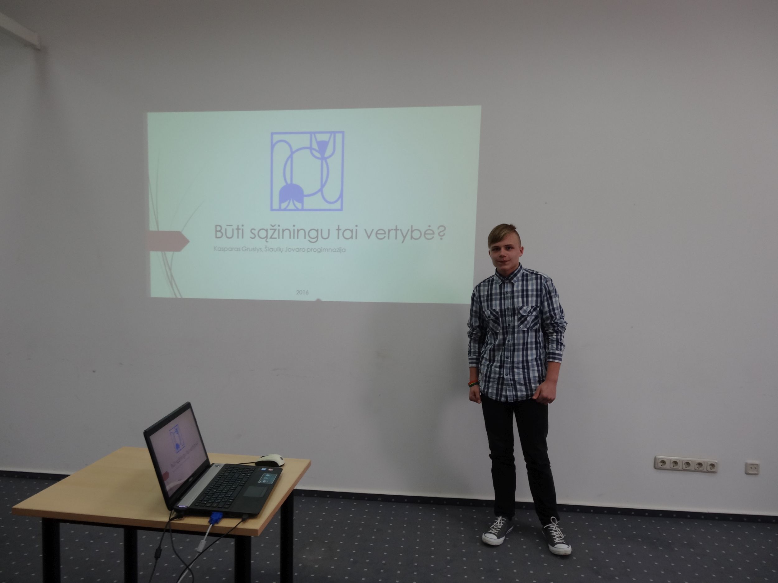 2016 m. balandžio 14 d. Šiaulių universitete vyko 16-oji Jaunųjų tyrėjų tarptautinė mokslinė konferencija „Socialinių ir humanitarinių mokslų aktualijos“, skirta Šiaulių 780-osioms metinėms paminėti. Šioje konferencijoje dalyvavo ne tik studentai, bet ir gausus būrys moksleivių. Jovaro progimnazijos 7c klasės moksleivis Kasparas Gruslys skaitė pranešimą „Būti sąžiningu – tai vertybė“. Moksleiviui padėjo pasiruošti etikos mokytoja Rita Toleikienė. Šis pranešimas sulaukė išskirtinio dėmesio. Kasparas savo pranešime pristatė moksleivių nuomonių apie nusirašinėjimą tyrimą, kuris leidžia paaiškinti nesąžiningo elgesio mokantis priežastis ir pasekmes. Įdomu tai, kad visi moksleiviai supranta nusirašinėjimo žalą jų ateičiai, tačiau šio veiksmo (nusirašinėjimo) dorumo ir sąžiningumo kontekste nevertina. Kasparo nuomone, tai buvo įdomus ir prasmingas renginys, kuriame verta dalyvauti kiekvienam.
