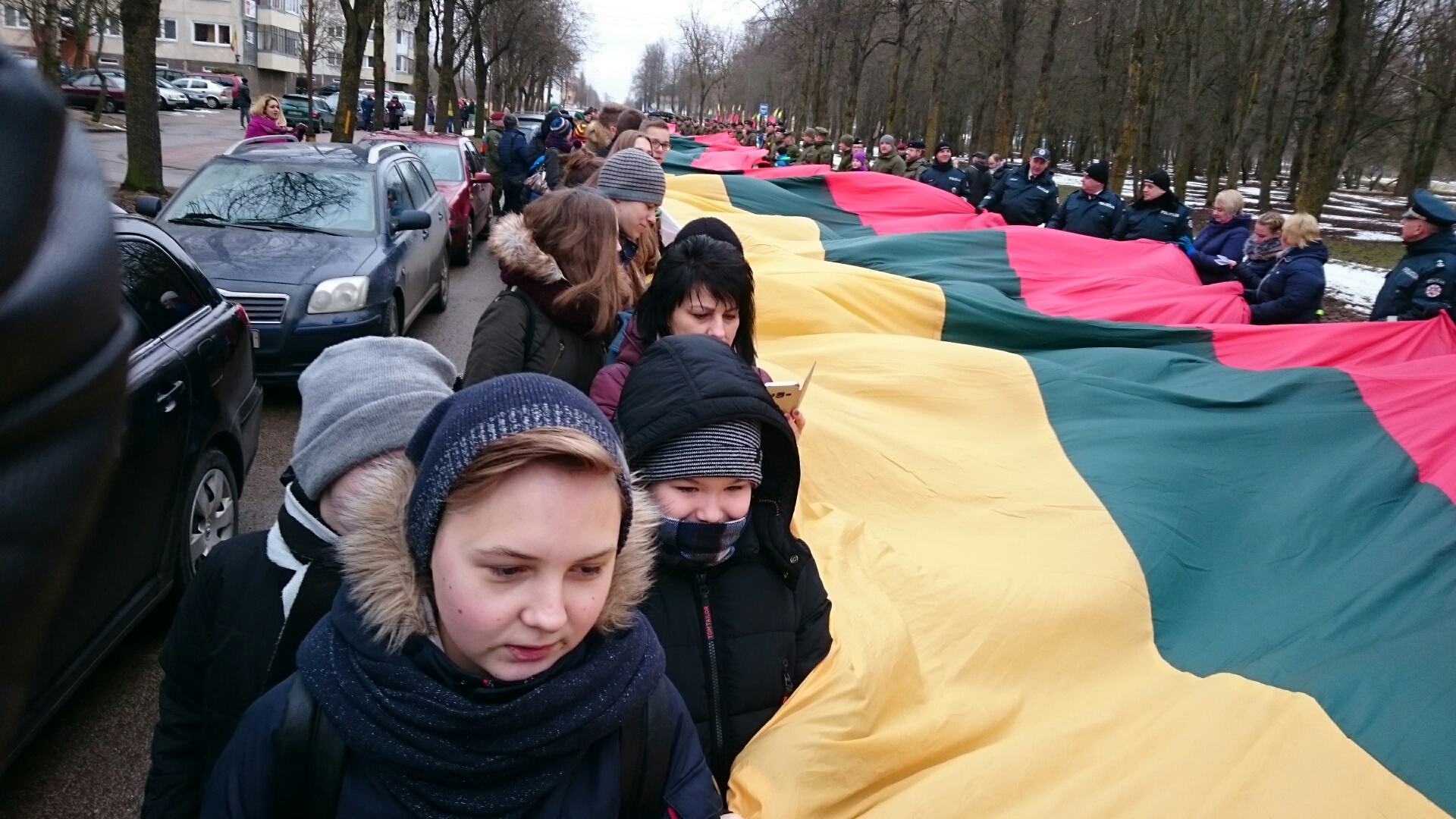 2017-03-11 Šiauliuose Lietuvos nepriklausomybės atkūrimo dienos proga vyko išskirtinė eisena, subūrusi šimtus šiauliečių. Kovo 11-oji buvo paminėta tradicija tapusiu Trispalvės nešimu, kuris šiais metais pavadintas „Lietuva mūsų širdyse“. Eisena prasidėjo nuo Signatarų alėjos, iš ten 400 metrų ilgio Trispalvė buvo nešama iki Prisikėlimo aikštės. Mūsų progimnazijos 6 – 8 klasių mokiniai taip pat prisijungė ir dalyvavo šioje gražioje šventėje. Dėkojame mokiniams ir 6a klasės mokinio Eugenijaus tėveliui.