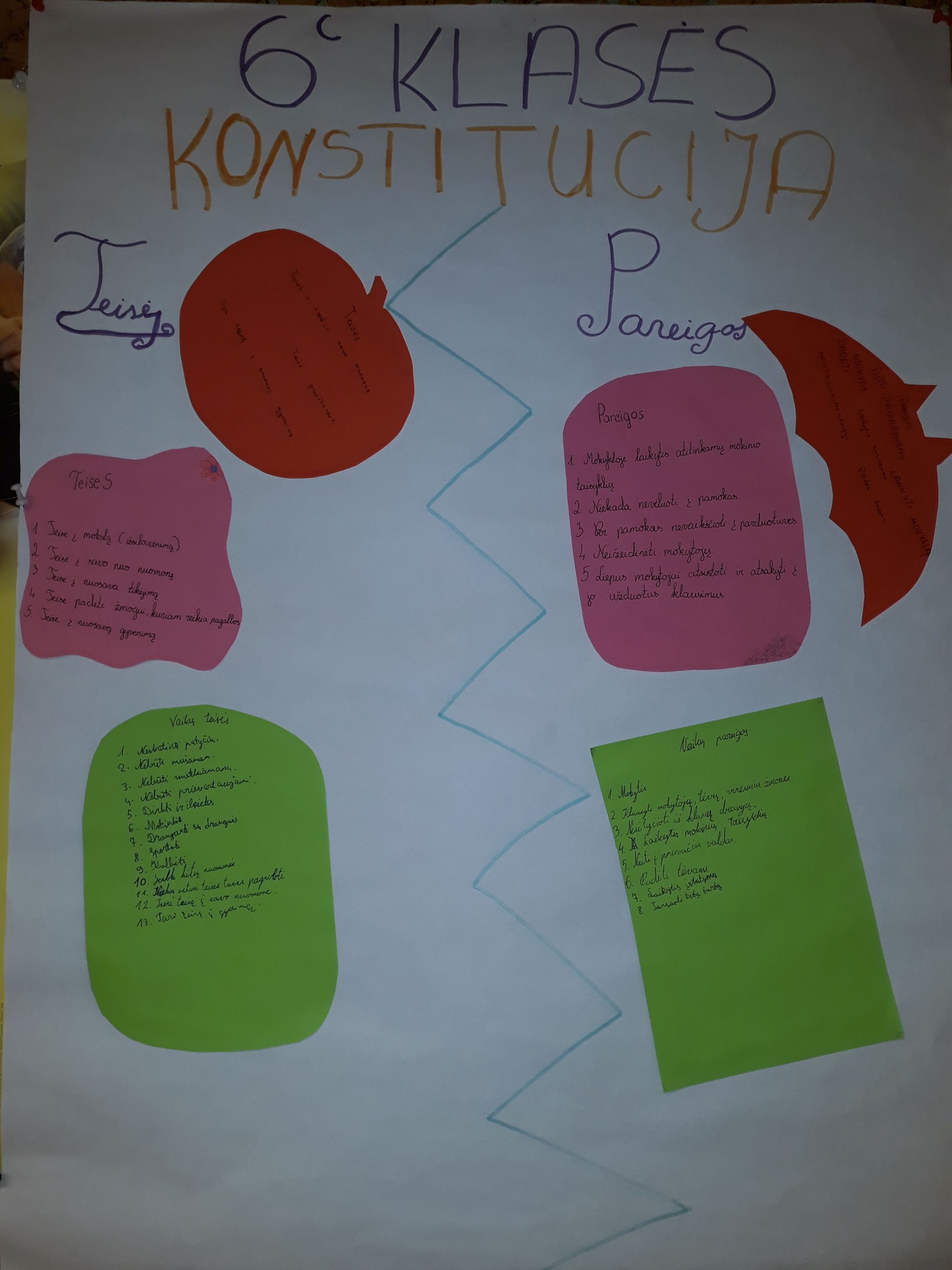 Spalio 25 dieną Lietuvoje minima Konstitucijos diena. 1992 metų spalio 25 dieną Lietuvos piliečiai referendume priėmė dabartinę Lietuvos Respublikos Konstituciją. Konstitucija – tai pagrindinis valstybės įstatymas, turintis aukščiausią teisinę galią, nustatantis šalies politinės, teisinės ir ekonominės sistemos pagrindus. Jovaro progimnazijos 5-8 kl. mokiniai, minint šią Lietuvai reikšmingą dieną, susipažino su Lietuvos valstybės konstitucijos istorija, valstybės simbolių kaita ir reikšme valstybei ir piliečiams, skaitė ir analizavo Konstitucijos straipsnius. Mokiniai aktyviai diskutavo, kurios teisės ir pareigos yra svarbios piliečiams, kuo jos panašios į vaikų teises ir pareigas. Vėliau mokiniai kūrė savo klasės konstituciją: svarstė, kurios vaikų teisės ir pareigos yra svarbiausios bei visi pasižadėjo jų laikytis.