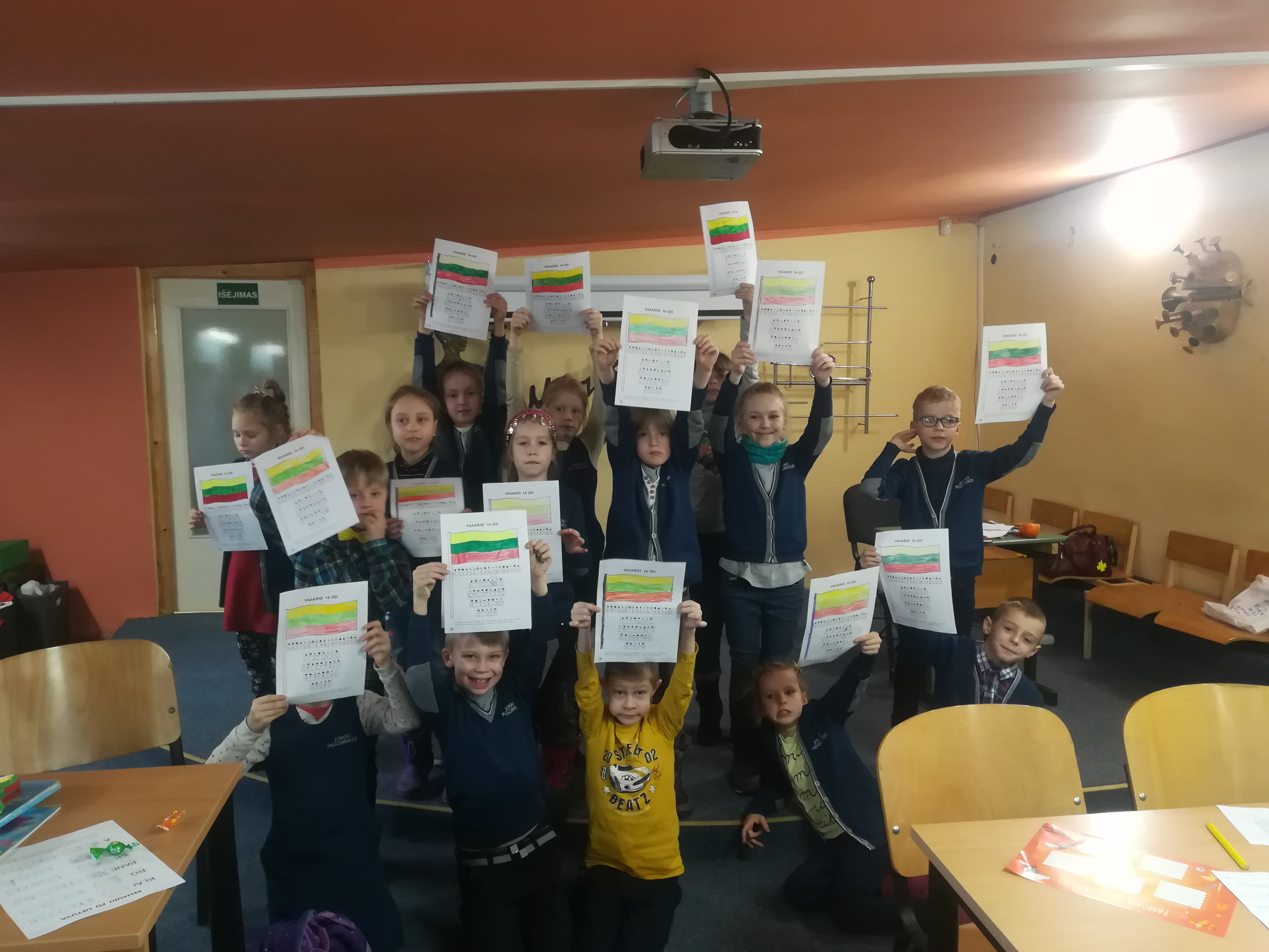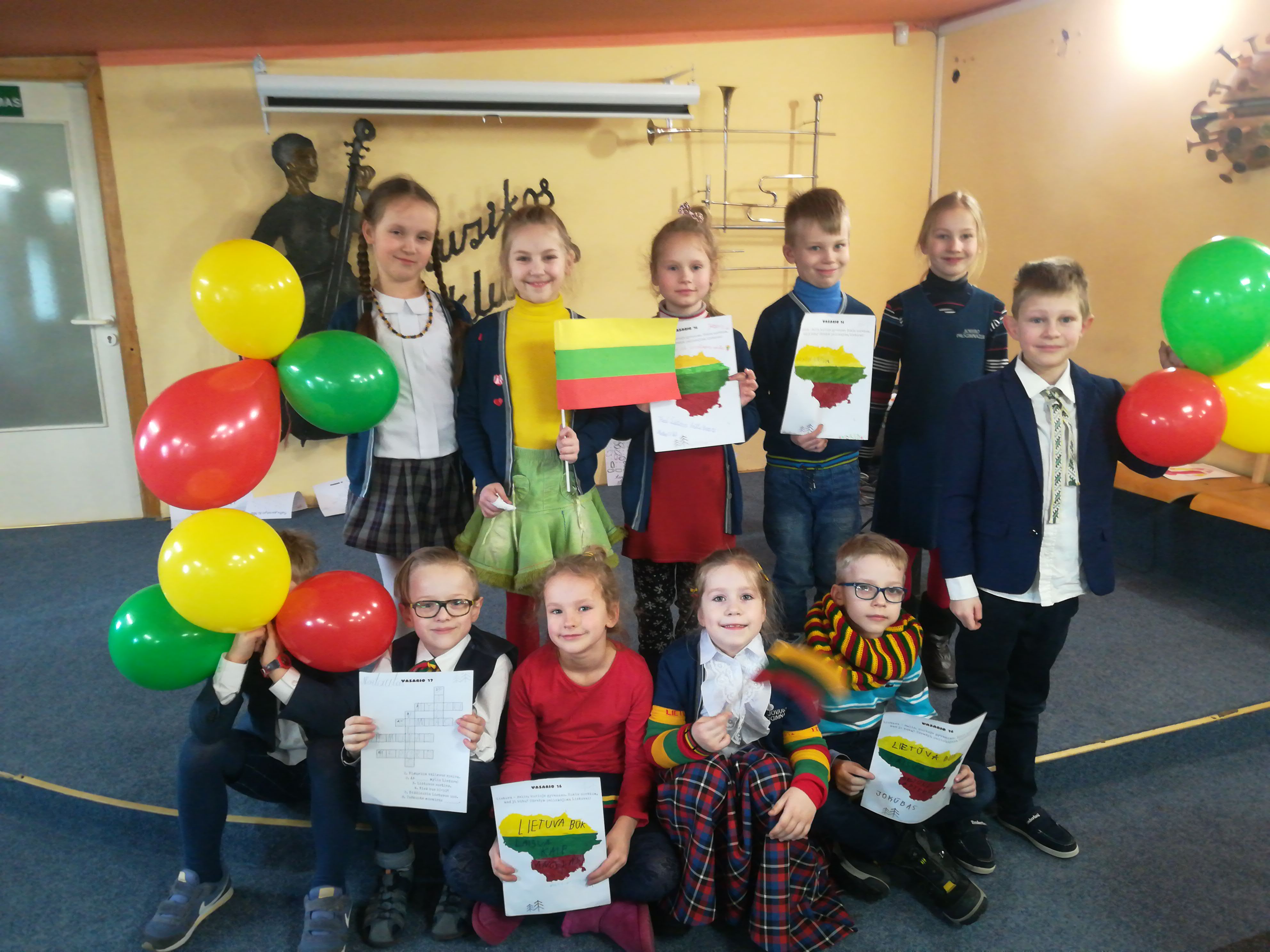 2018 m. vasario 13-15 d. pailgintos dienos grupės mokiniai paminėjo Lietuvos valstybės atkūrimo 100-metį. Pirmokėliai atliko įvairias užduotis apie Lietuvą: sprendė kryžiažodžius, atsakinėjo į klausimus, spalvino trispalvę, rašė palinkėjimus Lietuvai. Vaikai dalyvavo ir šventiniame mokyklos koncerte.