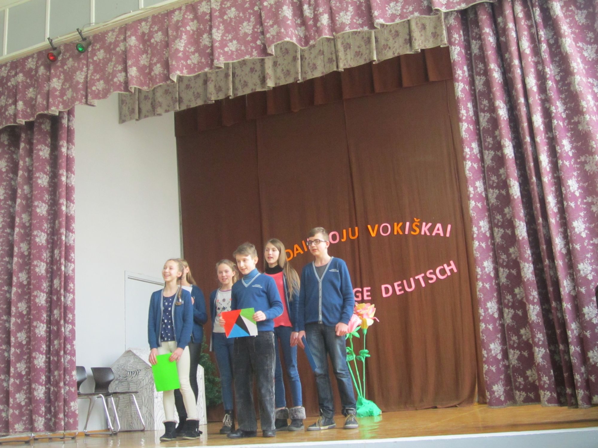 Mūsų mokyklos mokiniai kovo 9 dieną dalyvavo popietėje Zoknių progimnazijoje „Dainuoju vokiškai“. Mokiniai vokiečių kalba dainavo dainą apie spalvas, profesijas. Popietėje dalyvavo 6c klasės mokiniai: Smiltė Šatkauskaitė, Liepa Henrieta Rubikaitė, Medas Radišauskas, Rusnė Globytė, Bagučianskaitė Kamilė, Matas Grikštas. Visą popietę skambėjo vokiška muzika, įvairių kompozitorių dainos, kurias atliko ir kitų mokyklų vokiečių kalbą besimokantys mokiniai.