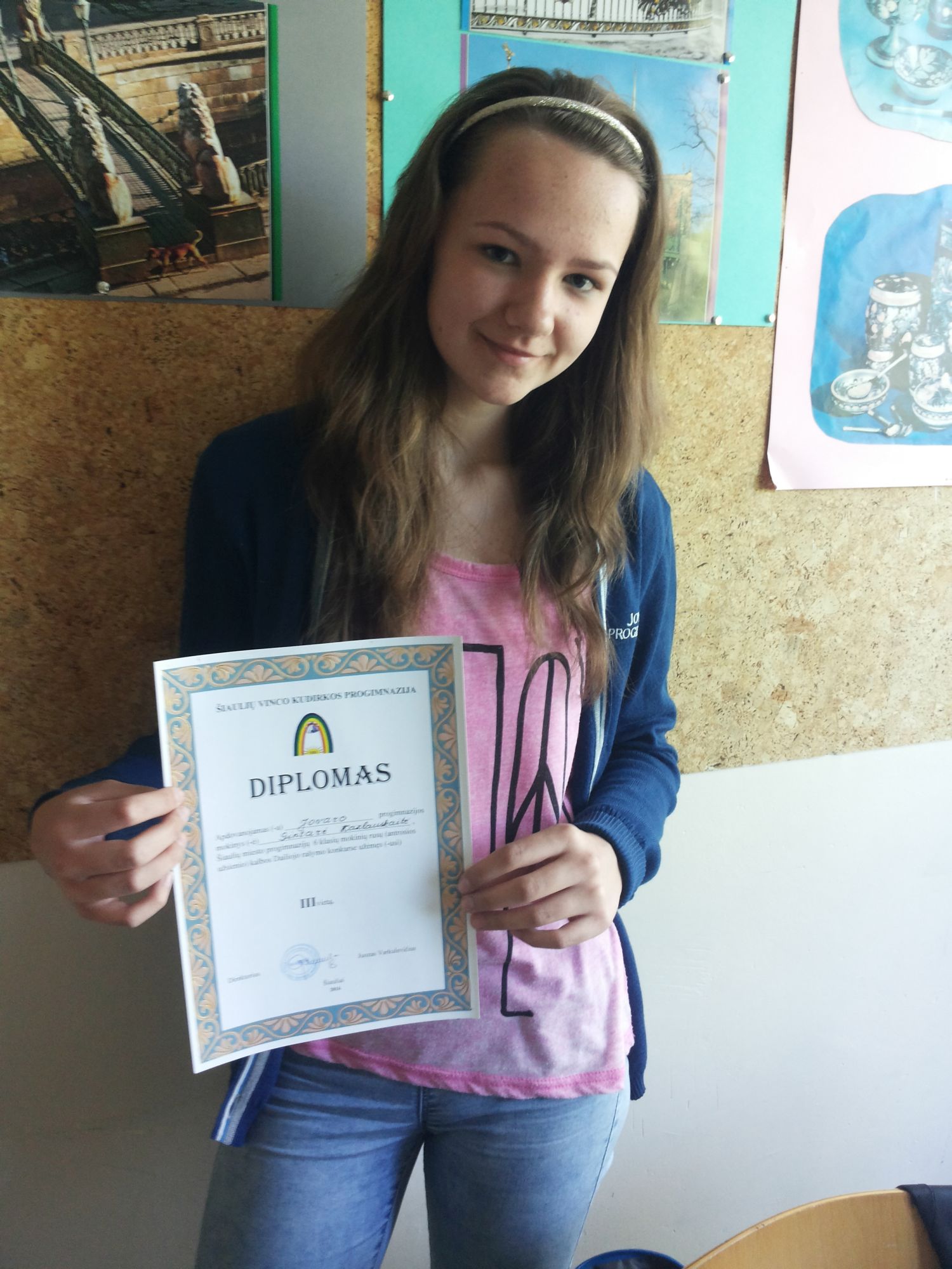 2016-04-28 Šiaulių m. Kudirkos progimnazijoje vyko Šiaulių miesto progimnazijų 6 klasių mokinių rusų (antrosios užsienio) kalbos Dailiojo rašymo konkursas. Jame dalyvavo 15 mokinių iš 8 progimnazijų. Mūsų mokyklos šeštokės Gintarė Kazlauskaitė (mokytoja Ana Senčionok) ir Gabija Urbanavičiūtė (mokytoja Sigutė Vlasova) taip pat bandė savo sėkmę. Sveikiname 6d klasės mokinę Gintarę Kazlauskaitę, laimėjusią 3-iąją vietą.