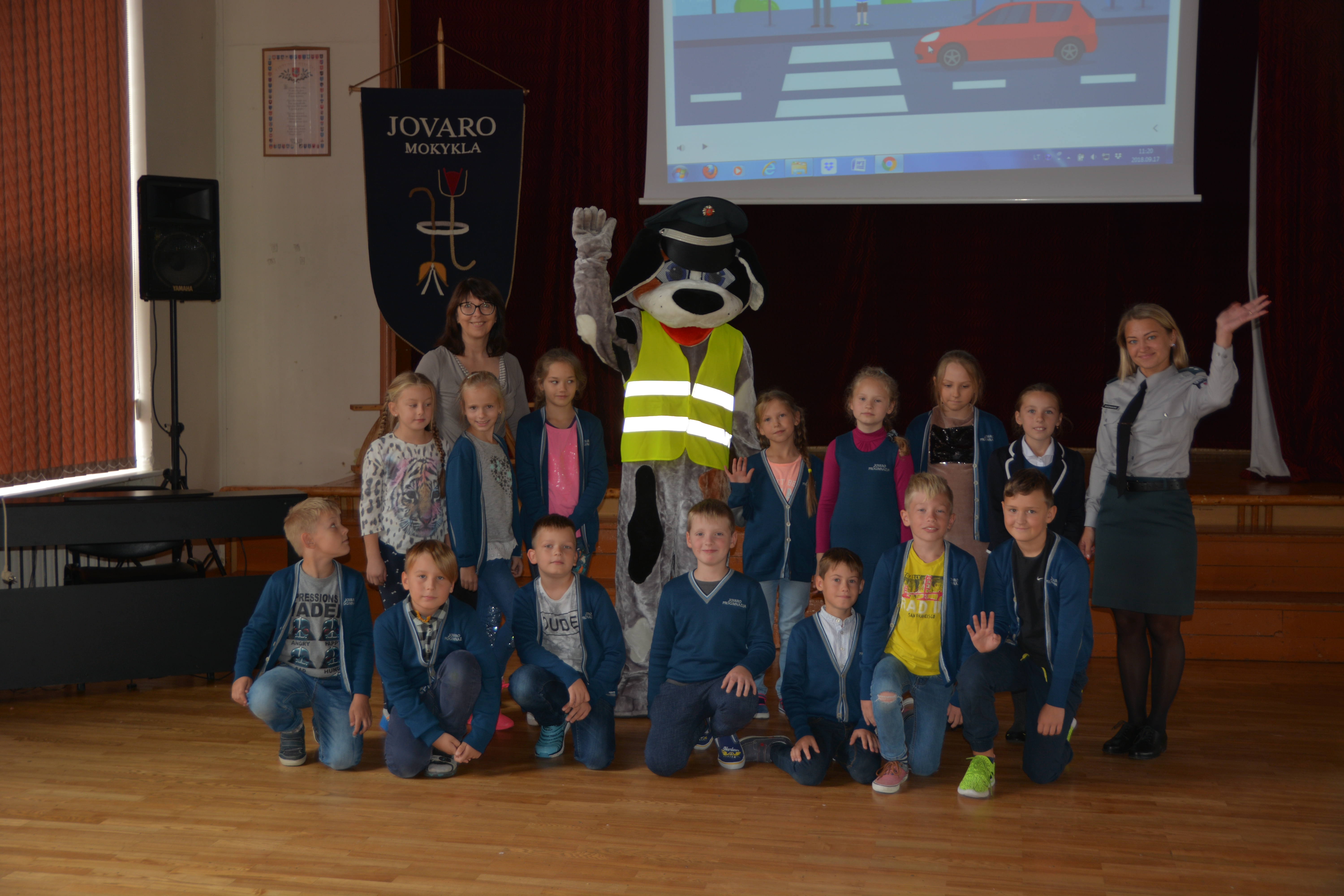 2018 m. rugsėjo 17 d. progimnazijos pirmų ir antrų klasių mokinius ir jų mokytojas (A.Rimkuvienę, E.Bražienę, N.Jasaitienę, A.Bielskienę, R.Rimšienę, I.Valančienę, L.Skridulienę) savo apsilankymu pradžiugino Šiaulių bendruomenės policijos pareigūnės bei policijos bičiulis Amsius. Policijos pareigūnės J.Beržinskienė ir A.Mišeikienė priminė mokiniams Kelių eismo taisyklių reikalavimus, gilino teorines ir praktines saugaus elgesio kelyje žinias: mokiniai buvo įtraukti į diskusijas, naudojant informacines komunikacines technologijas atliko užduotis apie įvairiausias situacijas keliuose. Mokiniai šauniai pasirodė, puikiai atsakinėjo į pateiktus klausimus, o prisiminę apie skaitymo naudą, dar gavo dovanų – knygų skirtukus su Amsiaus patarimais.