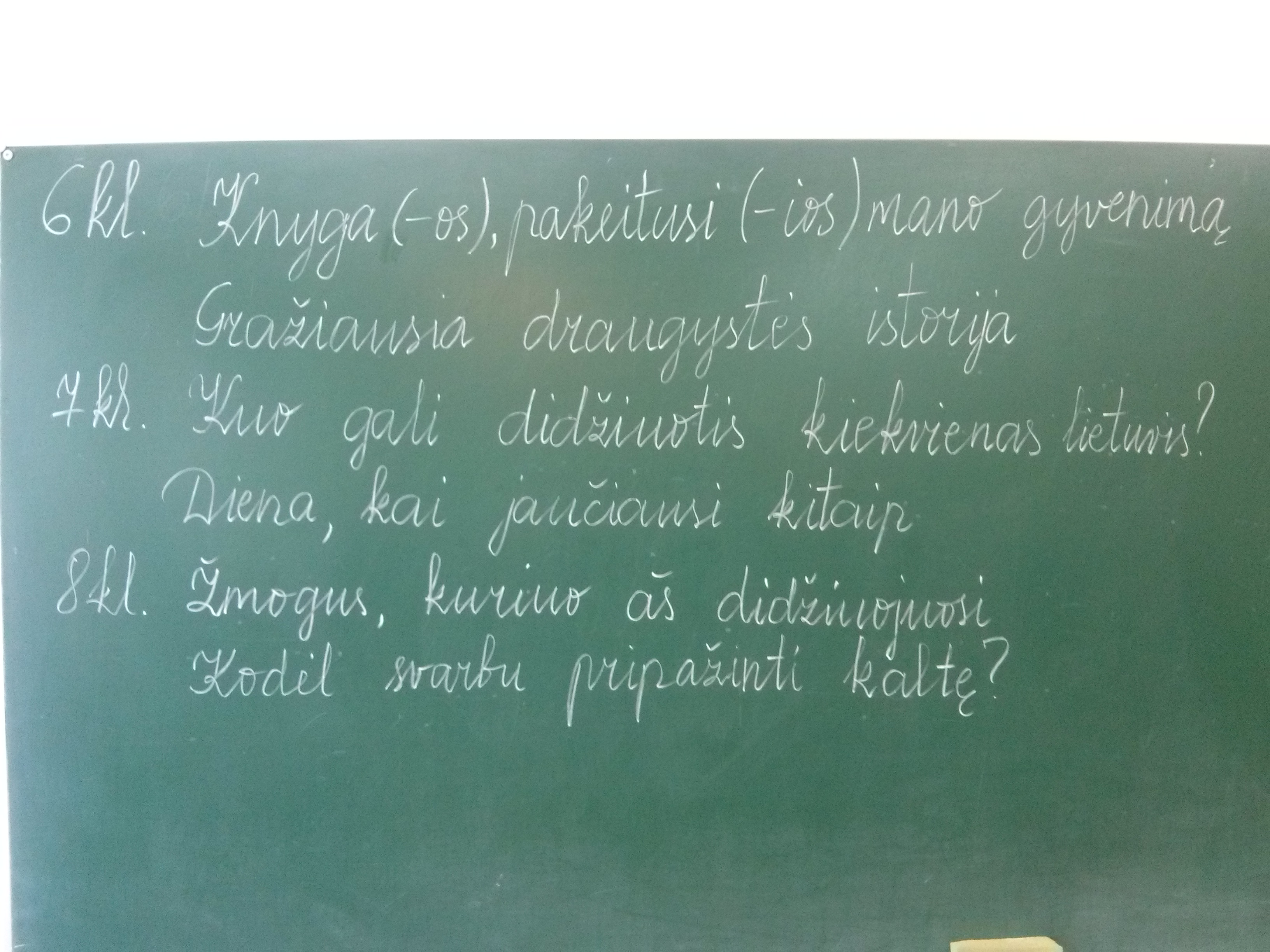 Kovo 2 dieną mūsų progimnazijoje vyko Šiaulių miesto bendrojo lavinimo mokyklų 6 – 8 klasių mokinių Rašinio konkursas, kurį organizavo Šiaulių Jovaro progimnazijos lituanistai. Konkurse varžėsi 31 dalyvis iš 12 miesto mokyklų. Sveikiname nugalėtojus, linkime sėkmės ir kituose konkursuose!