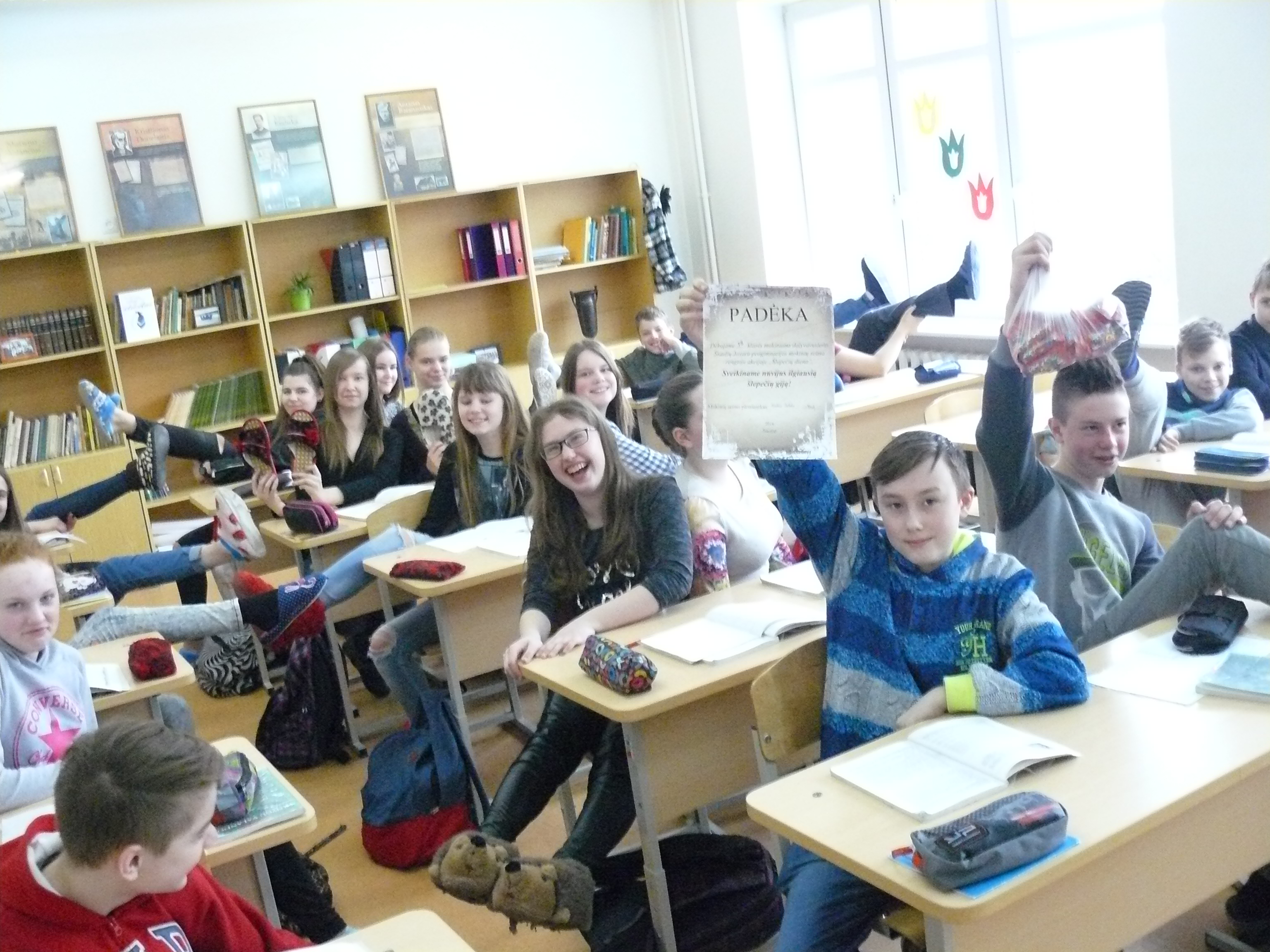Vargu, ar mokykloje tapo tyliau, tačiau smagiau ir jaukiau – tai tikrai. Iš pradžių visi gana nedrąsiai traukė šlepetes iš kuprinių. Bet kai atėjo laikas matuoti ilgiausią klasės ŠLEPEČIŲ GIJĄ – visi įsidrąsino ir kuo išradingiau stengėsi sustoti į gijas ir laimėti saldžių prizų.