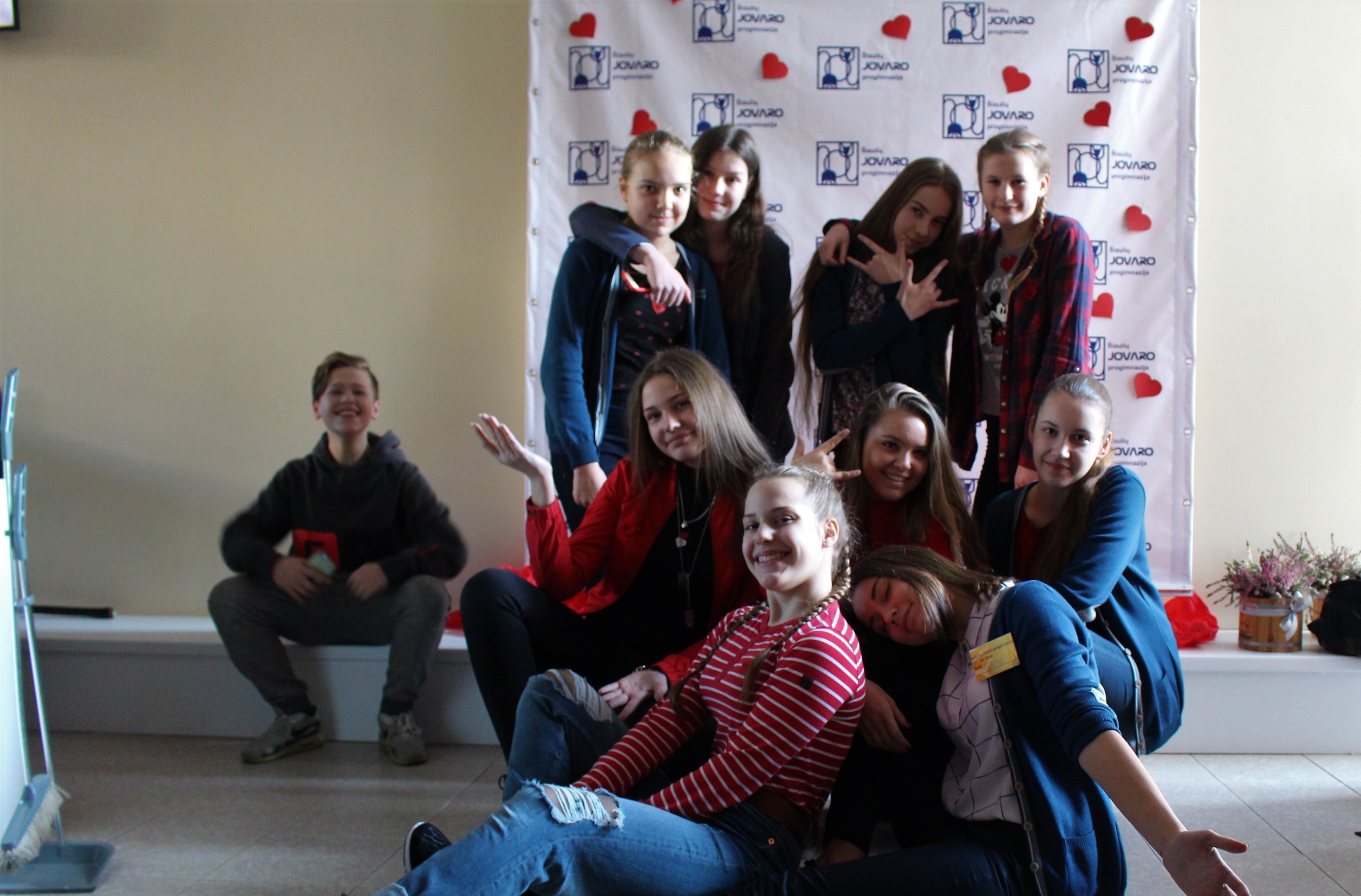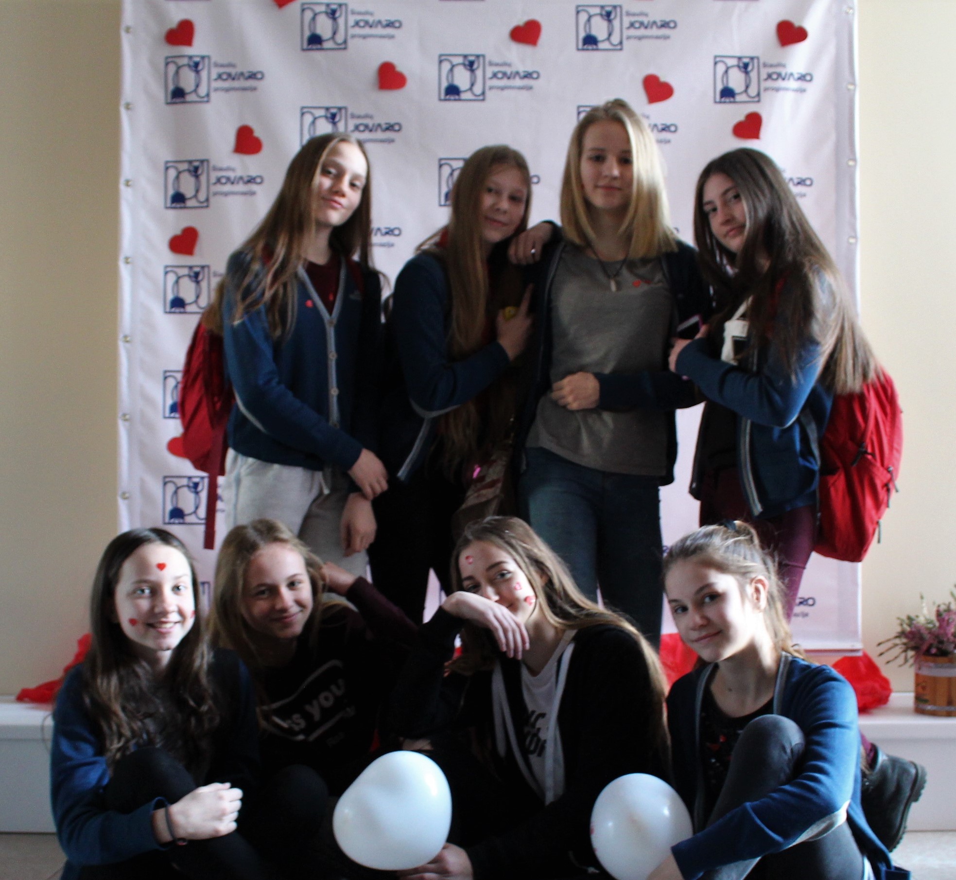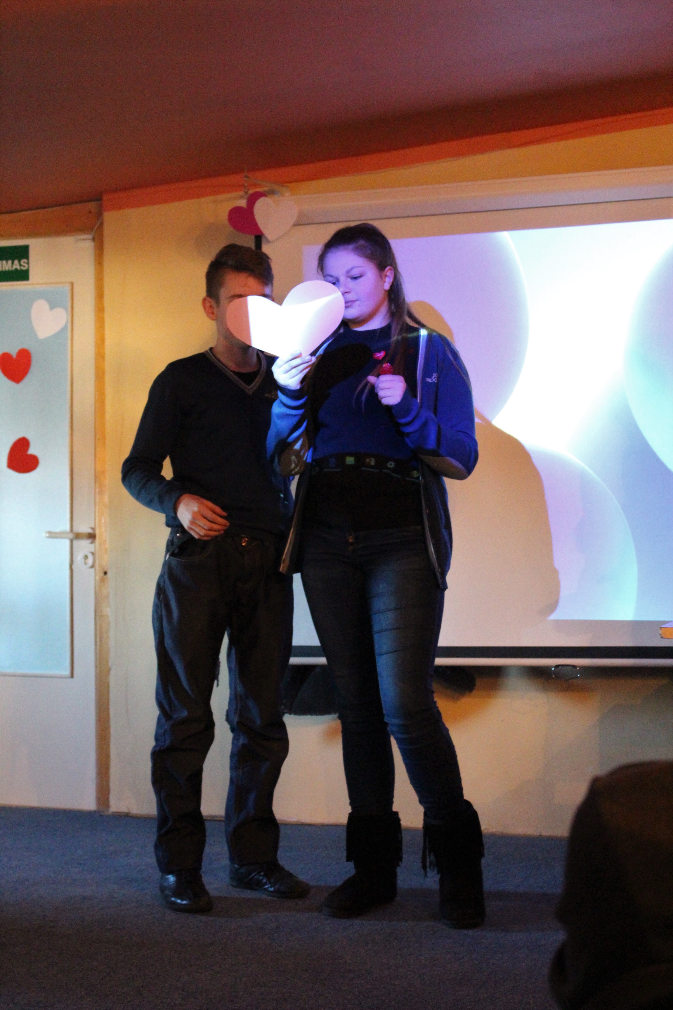 2016 – 02 – 14 mokinių seimas organizavo šv. Valentino dienos šventę. Šios dienos progimnazijos bendruomenės aprangos kodas buvo raudona spalva. 12 val. 6b, 6c, 6d klasių mokiniai dalyvavo akcijoje „Apkabinkime Žemę Valentino dieną“, kurios metu sustojo į širdelės formą ir taip išreiškė meilę savo Žemei. Pertraukų metu skambėjo muzika, vyko draugų fotosesija, mokiniai dalinosi sentencijomis apie meilę ir draugystę, rašė vieni kitiems laiškus. Po pamokų 6 – 7 klasių mokiniai buvo pakviesti į popietę, kurioje vyko šauniausios porelės rinkimai. Aktyviausi 7c klasės mokiniai dalyvavo viktorinoje, kūrė ketureilius, šoko valsą. Renginio pabaigoje vieni kitiems dovanojo šypsenas, puikią nuotaiką, o vedėjai prizus dalyviams. Dėkojame visiems aktyviai dalyvavusiems šventėje.