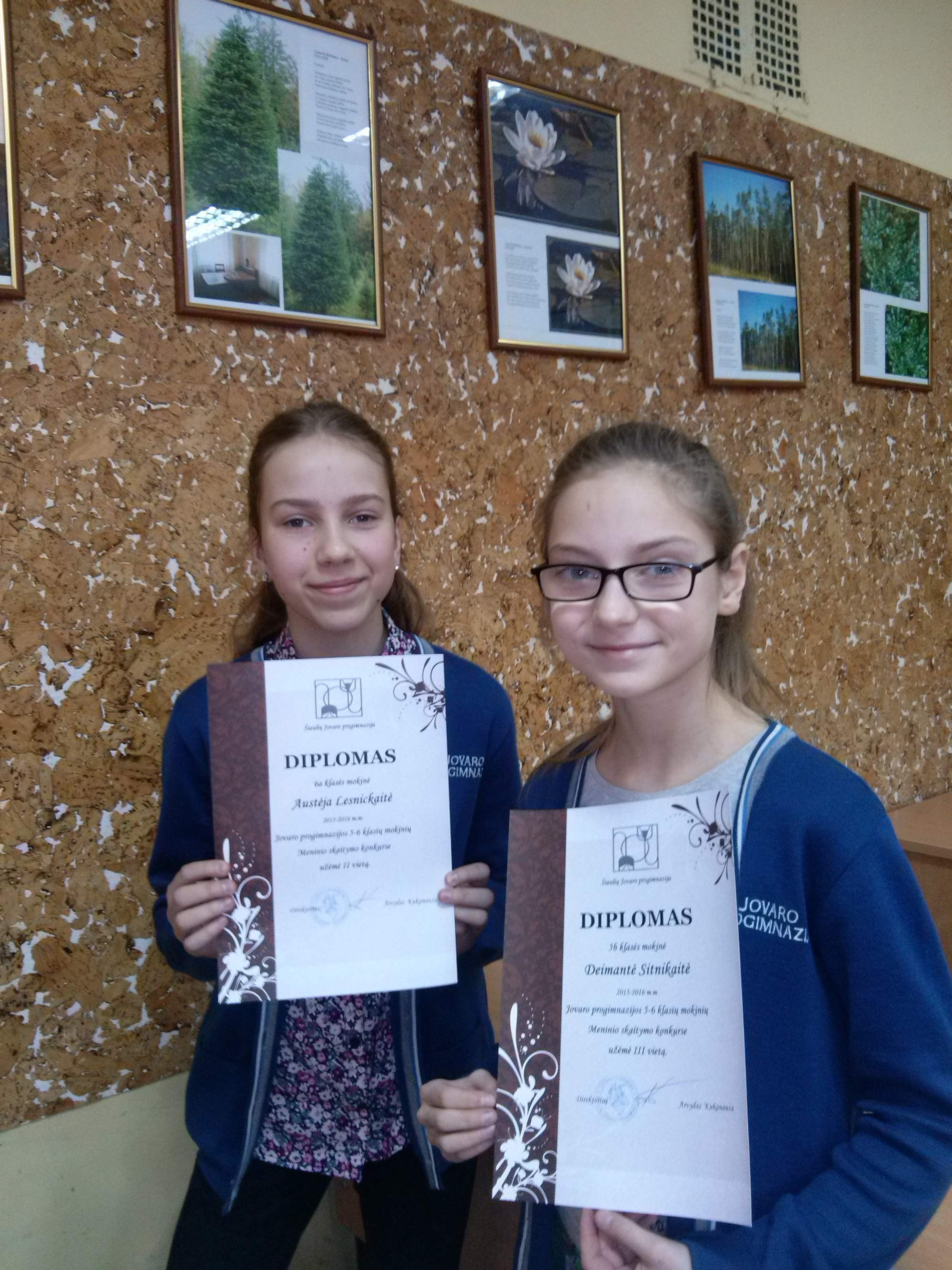 Jovaro progimnazijos Meninio skaitymo konkurso laureatai: