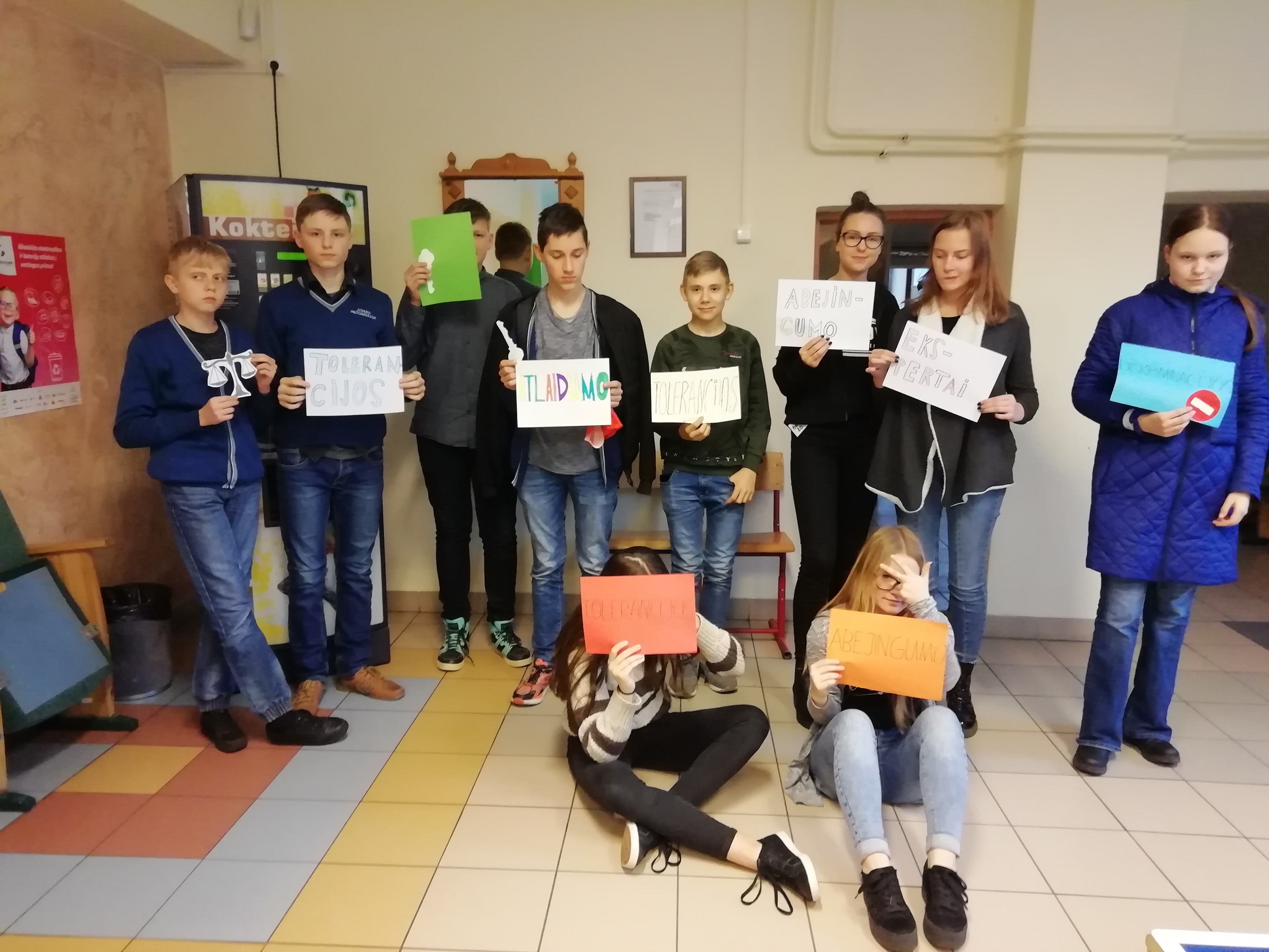 2018-11-16 minima tarptautinė Tolerancijos diena, kurios simbolis – raktas. Pilietinės iniciatyvos idėja puikiai tinka atrakinti žmonių mintims, širdžiai, jausmams ir įsileisti į savo minčių ir širdies labirintą šalia esantį kitokį žmogų ne tik savo išvaizda, bet ir kitokių pažiūrų. Kai kurie žmonės savo viduje turėdami pakantumą, supratimą, draugiškumą, kito priėmimą, pagarbą, ne visada tai atskleidžia kitiems, todėl kartais reikia turėti simbolinį raktą, kuriuo galime atrakinti žmogaus vidinį pasaulį ir padėti atsiskleisti šioms žmogaus savybėms. Prie šios pilietinės iniciatyvos prisijungė ir mūsų progimnazijos mokiniai. Visą savaitę klasių vadovai, kuratoriai klasės valandėlių metu aptarinėjo žodžio „tolerancija“ prasmę ir reikšmę, diskutavo kaip savyje surasti raktą, kad geriau suprastume kitaip mąstančius, kitaip kalbančius, kitaip atrodančius, analizavo tolerancijos/netolerancijos pavyzdžius, kasdieninėse situacijose. Dailės pamokų metu piešė piešinius susijusius su Tolerancijos simboliu. Interpretaciniai mokinių piešiniai, susidedantys iš įvairių vaizdinių, iš kurių vienas yra raktas, buvo eksponuojami parodoje. Mokinių seimas parengė stendą kuriame mokiniai, mokytojai pažymėjo koks, jų manymu žodis asocijuojasi su „Tolerancija“. Tik kūrybiškai ir suprantamai pateikta informacija visuomet pasieks mokinį ir taps jam prieinama. Mokinių aktyvas išrinko tris tolerantiškiausius mokinius. Sveikiname Ugnę, Benediktą ir Adomą. Dėkojame mokytojams G. Grigaliūnaitei, V. Grušui parengusiems piešinių parodą, kuratoriams/klasių vadovams už bendradarbiavimą įgyvendinant šią iniciatyvą.
